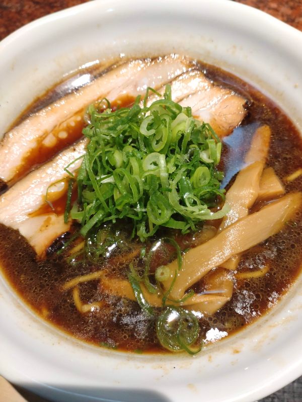 たまり醤油、チャーシューのタレが入った真っ黒なスープなのに、塩味はちょうどよくグビグビ飲めるスープです。しっかり豚の味がします。鶏ガラが好きな人は醤油、家系が好きな人は黒醤油を頼むと幸せになれるかもしれません。