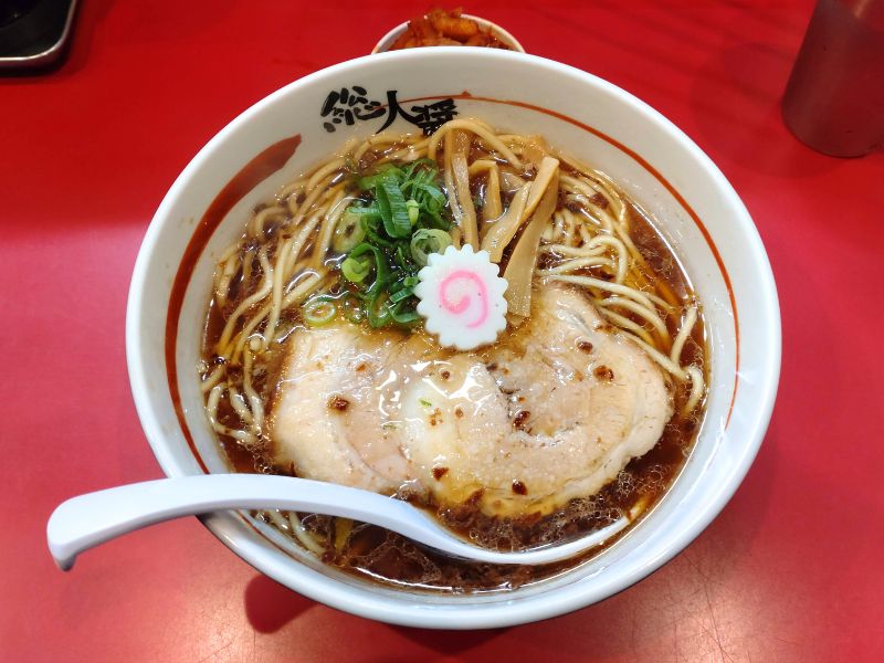 あっさりだけど深みのあるスープ、やや太めの麺、チャーシューやメンマもバランスがいいです。チャーハンもおいしいですし、食べ放題のキムチもコクがあってうまいです。